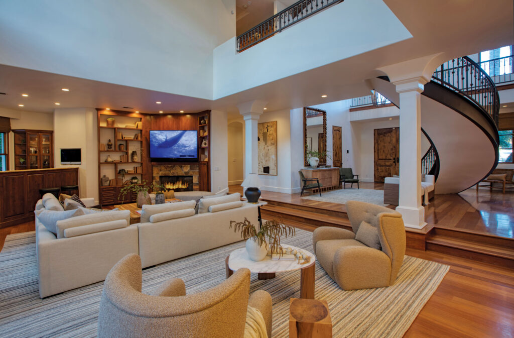 The house itself spans six bedrooms plus a one-bedroom ADU guesthouse, totaling approximately 7,400 square feet of living space. The original architect, local Larry Peha, focuses his designs on lifestyle integration architecture—how spaces should function as extensions of how people actually live.
