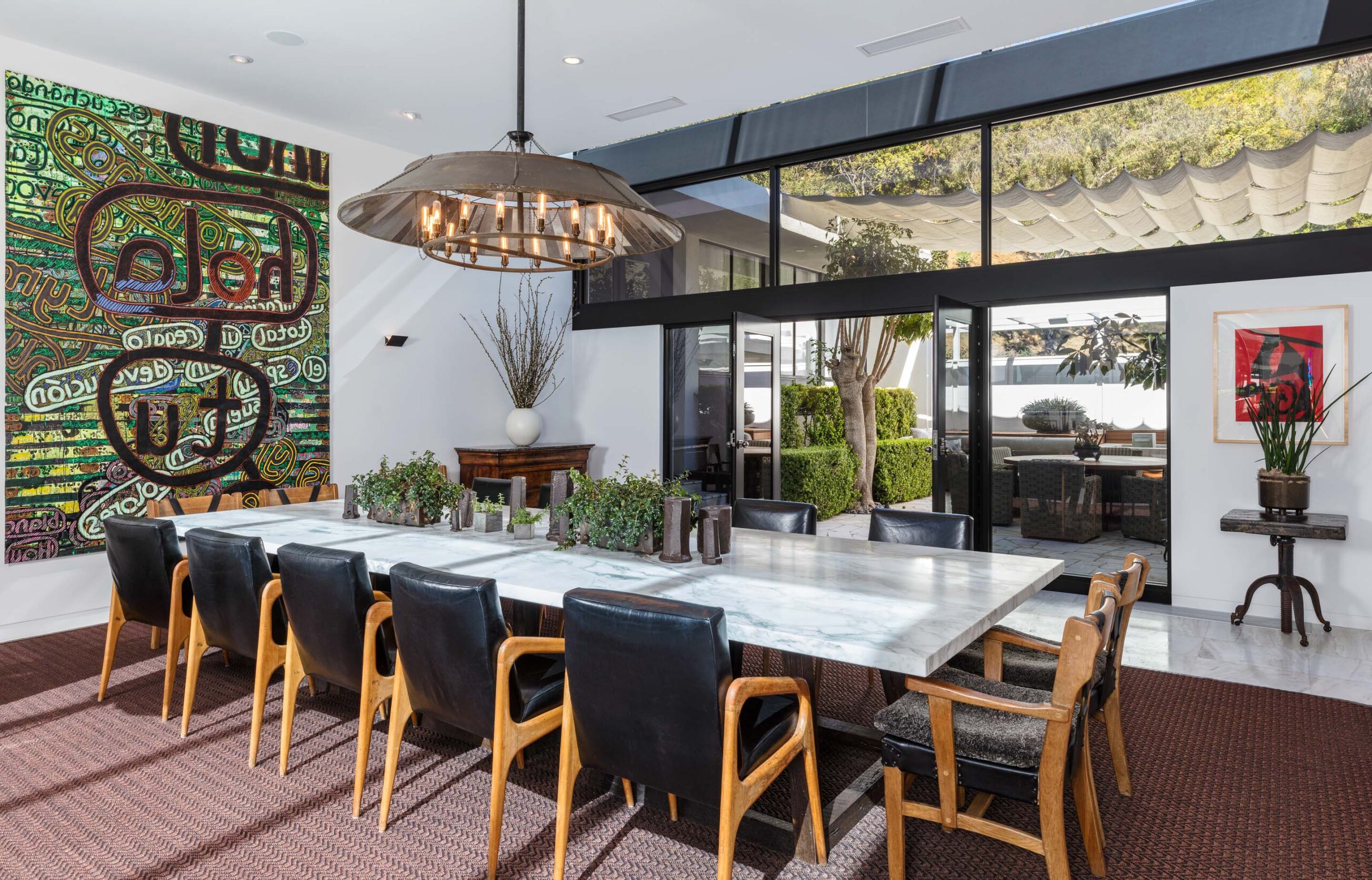 Originally built in 1956 by noted architect Hal Levitt, this Mid-century Modern home dubbed “The Skouras Residence” has accommodated many high-profile owners through the years. Among them: Ellen DeGeneres, interior designer Kelly Wearstler, and currently, a prominent Hollywood producer. The five-bedroom abode has since been remodeled to perfection, complete with 8,000-plus square feet of one-level living space highlighted by a light-filled entry that opens to a living room, bar, lanai and game room.