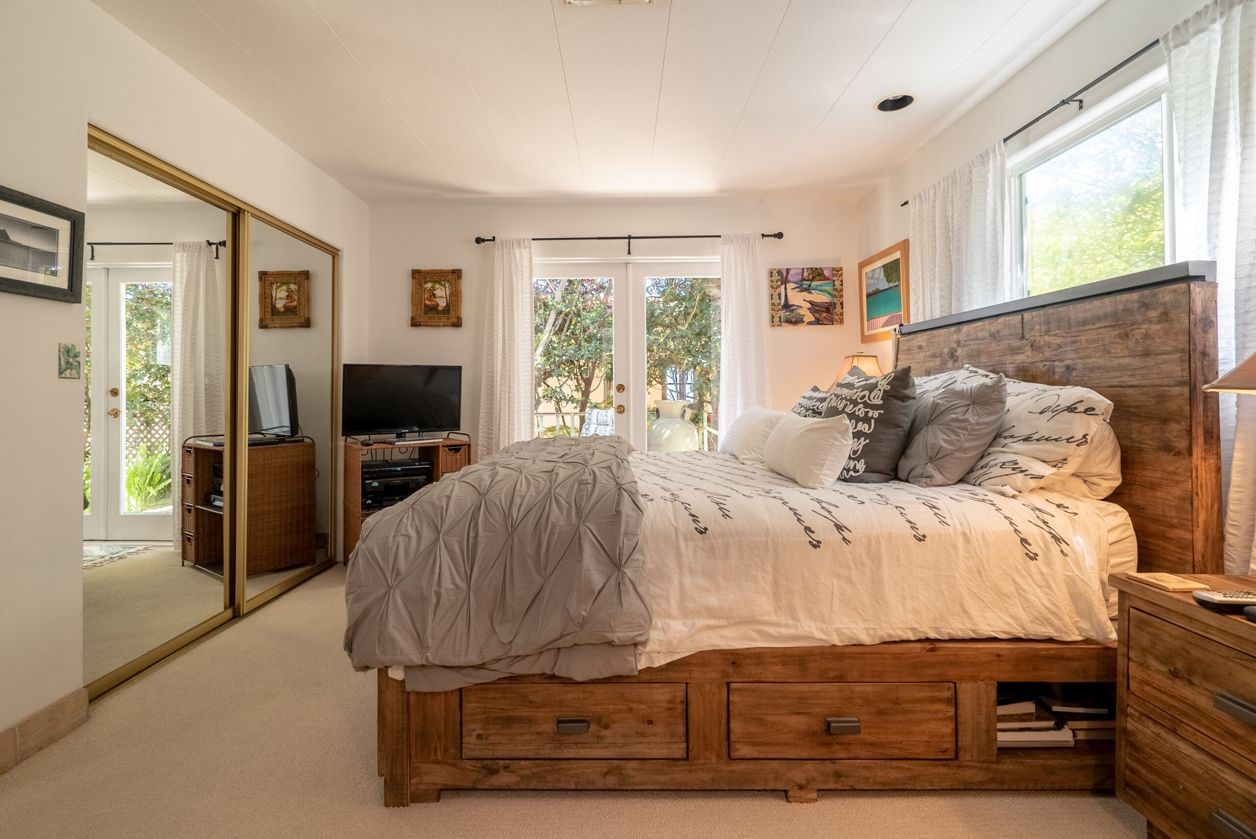 More than 1,600 square feet of upgraded environs feature custom tile and wood work and French doors that open onto a large stone view deck, while an outdoor sanctuary boasts a spa tub, and lime, guava, orange and persimmon trees.