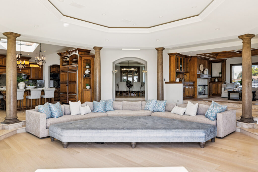 “It’s rare to find this much interior space in Manhattan Beach,” agent Ed Kaminsky of the Kaminsky Real Estate Group at eXp Realty says of the 9,047-square-foot residence, which offers six bedrooms, eight baths, multiple living spaces, a club-inspired basement, a tropical backyard oasis and more.
